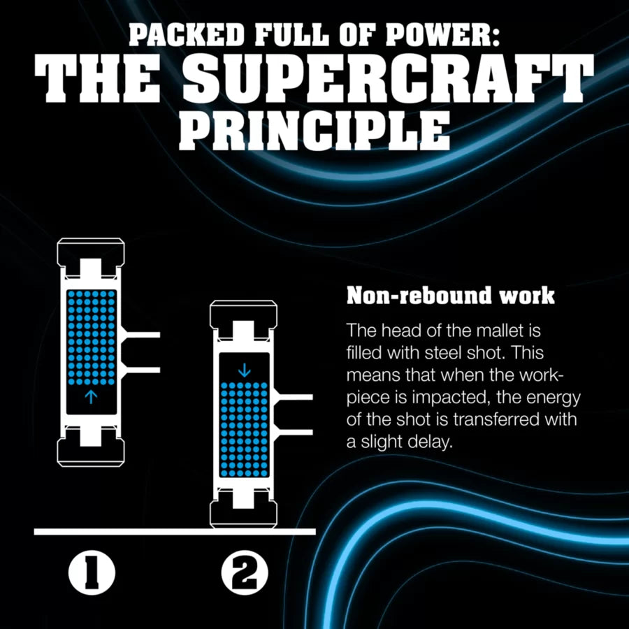 The SUPERCRAFT promotional box construction contains not only the non-rebound, yellow fluorescent SUPERCRAFT soft-face mallet, but also the PARAT hammer holder.